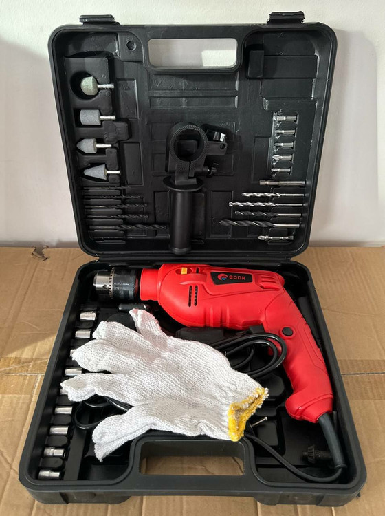 مشخصات: توان دریل ۱۰۰۰ وات ، قابلیت تنظیم سرعت ( دیمر دار) ، چپگرد راستگرد، سه نظام ۱۳ میلیمتری آچاری، دو حالته دریل معمولی و دریل چکشی،ماشه گازی به همراه لوازم کامل