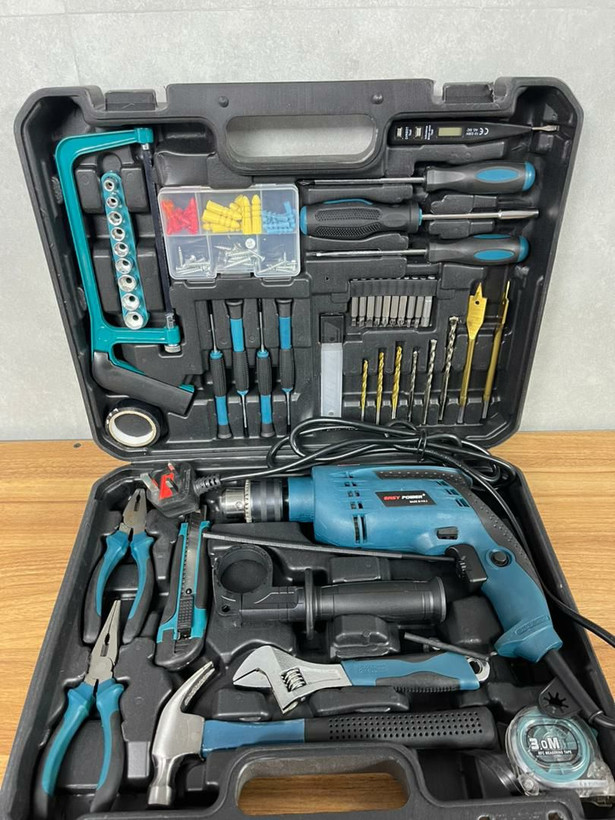 دریل برقی ۱۳ چکشی دار، دیمر دار ، ۸۵۰ وات به همراه ابزاردستی دستی کامل مطابق عکس