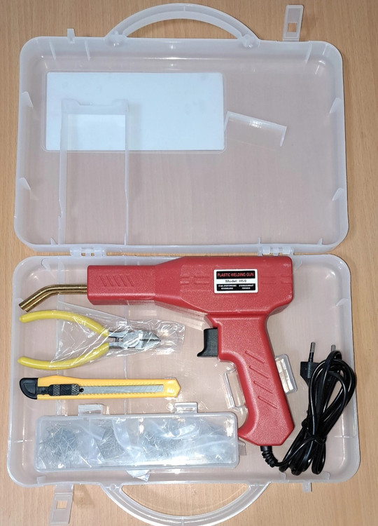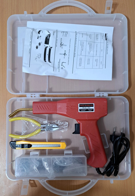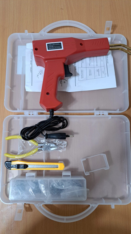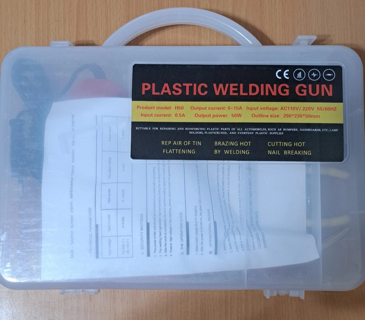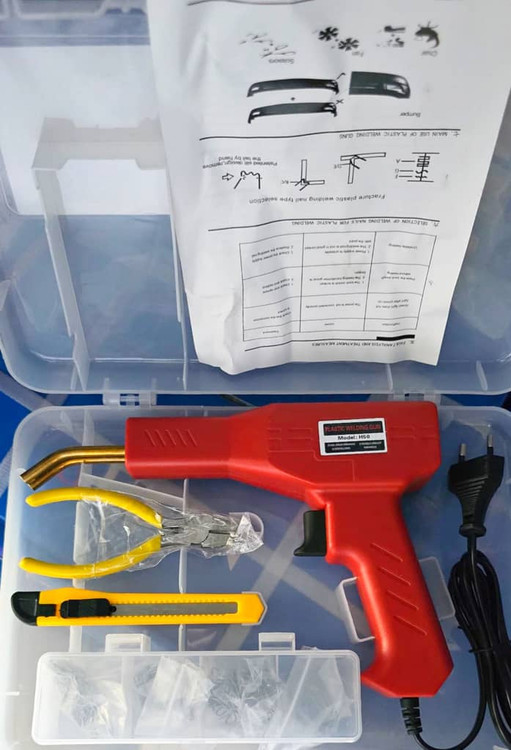 مشخصات: توان ۱۵۰ وات ، وزن ۵۰۰ گرم ، مخصوص جوش پلاستیک، مناسب مصارف در صافکاری و نقاشی خودرو برای دوخت سپر، دوخت قاب شکسته، چراغ خودرو،دوخت سینی جلو خودرو، فلپ ها و حتی قاب آینه های کناری خودرو کاربرد دارد، به همراه حدود ۱۰۰ سری مختلف، دم باریک و کاتر