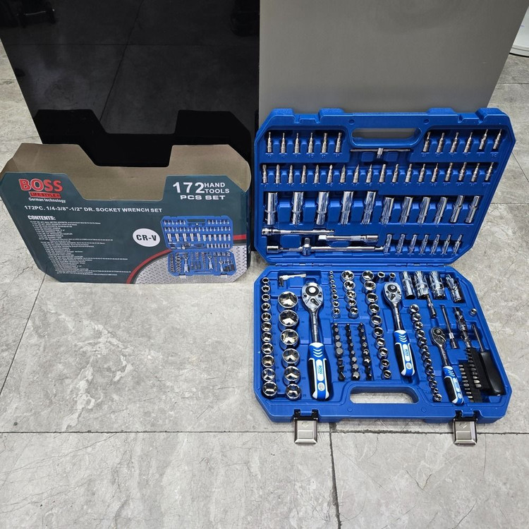 مشخصات: ✔ صنعتی و کار دائم ✔ دارای جغجغه های ۷۲ دندانه و صنعتی ✔ ابعاد بسته بندی در حالت بسته ۳۵×۴۶ سانتی متر ✔ ۱۸ عدد بکس۱/۲( سایزهای ۱۰ تا ۳۲) ✔ ۱۰ عدد بکس ۳/۸(سایزهای ۱۰ تا ۱۹) ✔ ۱۳ عدد بکس ۱/۴( سایزهای ۴ تا ۱۴) ✔ ۱۳ عدد بکس E(سایزهای ۴ تا ۱۴)