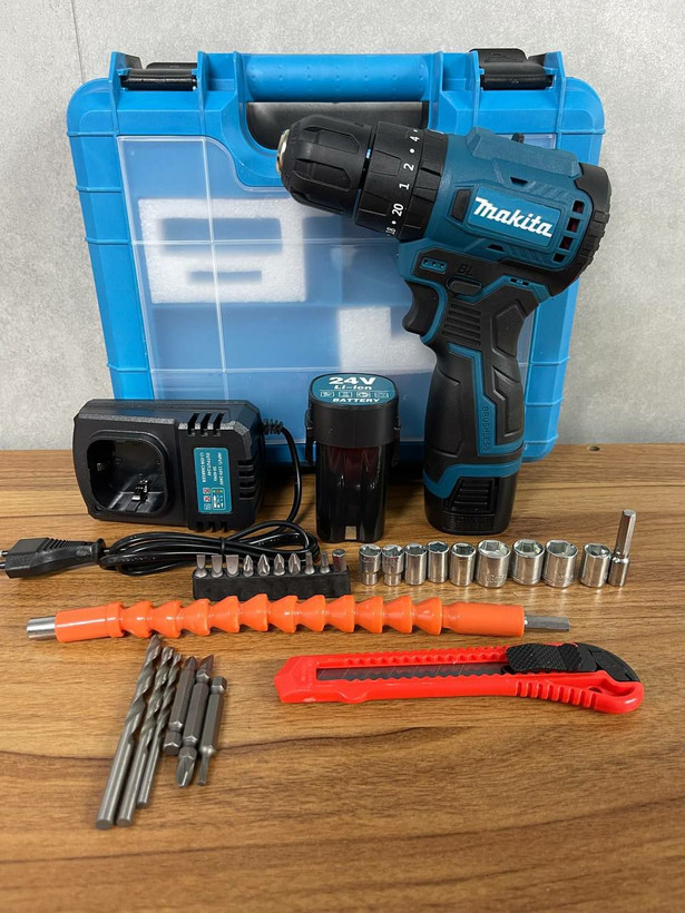 موتور براشلس ( بدون زغال) ،باطری ۴ سلول، ۲۴ ولت ، دو باطری لیتیوم یونی، سه حالته ( سوراخ کاری فلزات، چوب و PVC، پیچ بند و چکشی ...) ، چپگرد راستگرد، به همراه لوازم کامل کیفیت فوقالعاده عالی