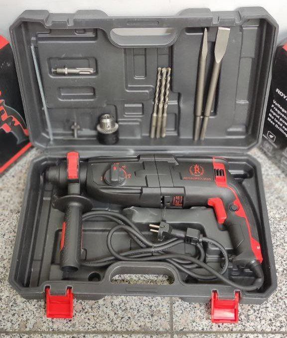 مشخصات: ۲۳۰۰ وات ، ۳ کاره ( سوراخ کاری فلزات، سوراخ کاری بتن، سنگ، آجر، موزائیک و غیره، تخریب سبک کاشی، گچ، سرامیک و...)، چپگرد راستگرد، ماشه گازی، دو قلم تخریب تیز و پهن، سه عدد مته سوراخ کاری بتن و کیف حمل کیفیت بالا