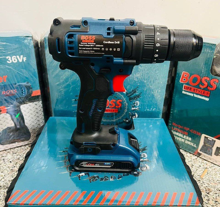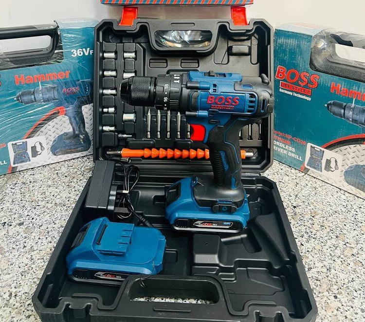 مشخصات: ۳۶ ولت جدید، باطری کتابی،باطری لیتیوم یونی، ۳ حالته ( سوراخ کاری فلزات، چوب و PVC، پیچ بند و سوراخ کاری چکشی)، ترکمتر دار ، ماشه گازی، چپگرد راستگرد، سه نظام فلزی اتومات،