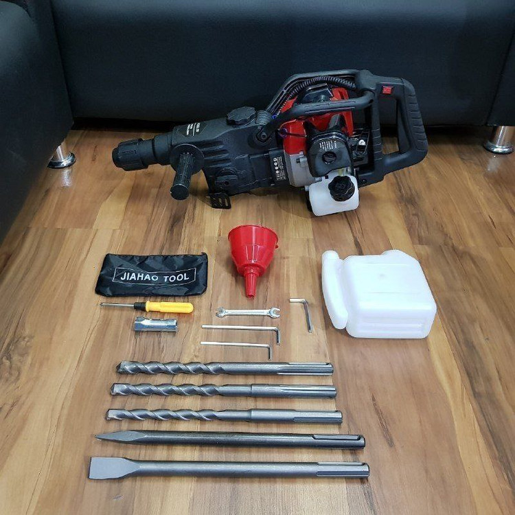 دارای: دو عدد قلم تخت و تیز، سه عدد مته پنج شیار،ظرفیت مخزن سوخت ۹۰۰ سی سی، ابعاد دستگاه ۲۵۰×۳۱۰×۶۳۰ کیفیت و قدرت تخریب بالا
