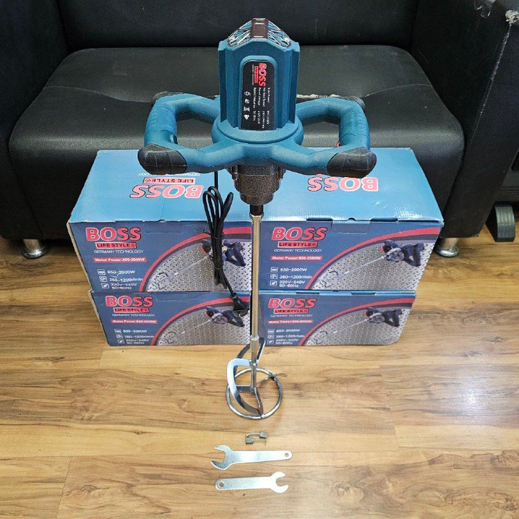 مشخصات: ✔ ۲۰۰۰وات ✔ قابلیت تنظیم دور موتور (۱۲۰۰-۲۸۰ دور بر دقیقه) ✔ دارای مته همزن آبکاری شده به طول ۷۲ سانت ✔ قطر سر همزن ۱۲ سانت ✔ سیم پیچ تمام مس ✔ دو دسته ✔ گیربکس قوی ✔ قابلیت تعویض ذغال بدون باز کردن دستگاه