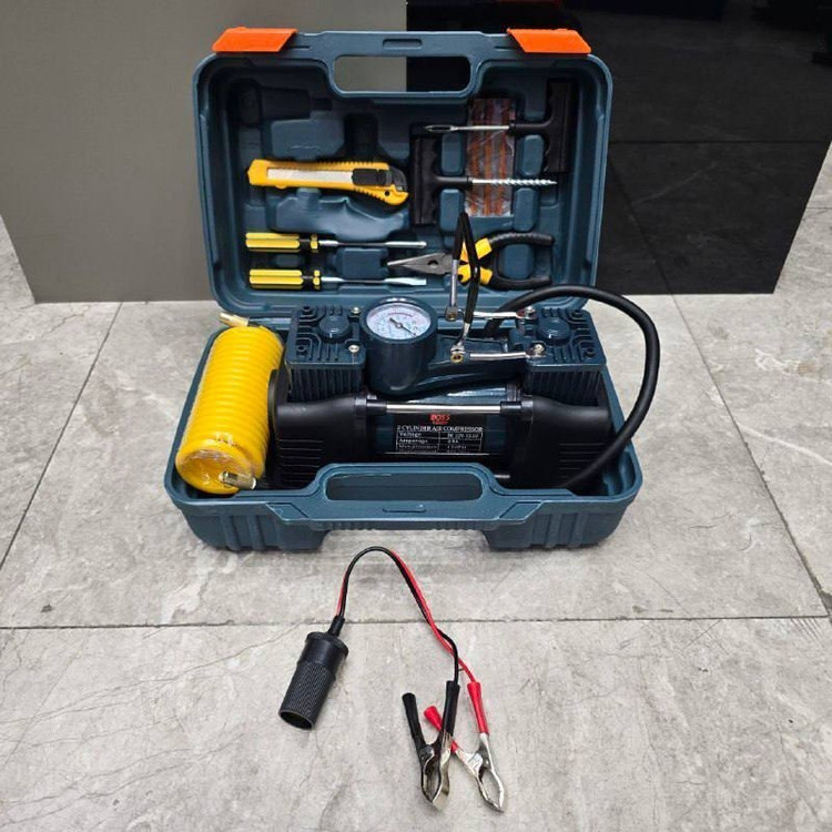 دارای: متعلقات کاربردی؛ شلنگ فنری به طول ۵ متر، دمباریک، کاتر، انبرک های پنچر گیری، پیچ گوشتی دوسو و چهارسو، وصله پنچرگیری، چسب پنچرگیری، تبدیل فندکی به سر باتری خودرو، سه عدد سری (جهت باد زدن توپ، دوچرخه، قایق بادی و ...)