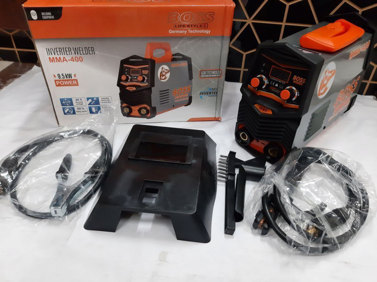 دستگاه جوش ۴۰۰ توربو ۹.۵ کیلو وات جدید باس ذوب الکترود ۲ و ۳ دائم و ۴ مقطعی به همراه لوازم کامل جوشکاری کیفیت عالی مناسب مصارف خانگی و نیمه صنعتی