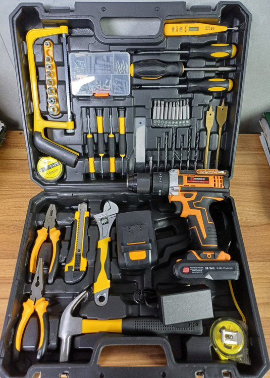 سه نظام سایز ۱۳، ۹۸ ولت ، دو باطری، شارژر خشابی، لوازم کامل مطابق عکس شامل چکش، آچار فرانسه، انبردست، کمان اره و ... کیفیت عالی