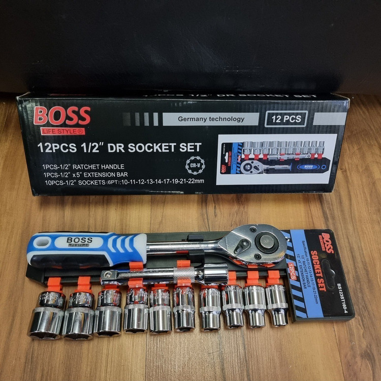 مشخصات: ✔ درایو ۱/۲ (سایز بزرگ) ✔ دارای ۹ عدد بکس( سایزهای: ۸، ۱۰، ۱۲، ۱۳، ۱۴، ۱۵، ۱۷، ۱۹ و ۲۲) ✔ دارای جغجغه ضامن دار کله گاوی و قدرتمند ✔ جغجغه ۷۲ دندانه ✔ به همراه کمک بکس ۱۳ سانتی متری ✔ کیفیت بالا