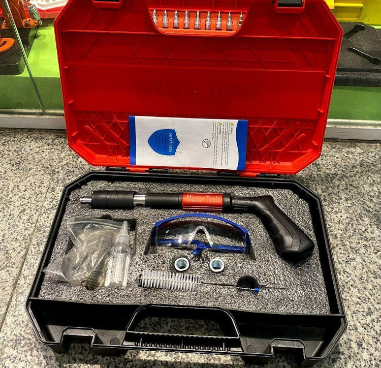 مشخصات: امکان استفاده در بتن، چوب، پلاستیک و ورق های نازک فلزی، قابلیت استفاده میخ تا ۴ سانت،کارکرد ساده و قوی، سبک و قابل حمل،بدون نیاز به چاشنی انفجاری، به همراه لوازم کامل عینک ایمنی، میخ،سوزن و ... کیف حمل BMC