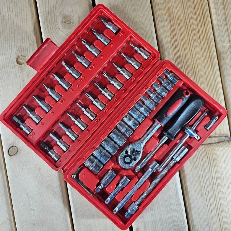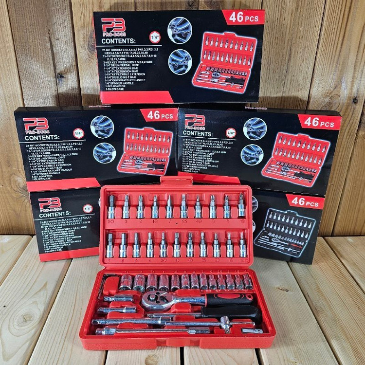 مشخصات: .✔ درایو ۱/۴ ✔ دارای ۱۳ عدد بکس( سایزهای: ۴، ۴.۵، ۵، ۵.۵، ۶، ۷، ۸، ۹، ۱۰، ۱۱، ۱۲، ۱۳ و ۱۴) ✔ ۲۱ عدد انواع بکس پیچ گوشتی ✔ دارای جغجغه ضامن دار