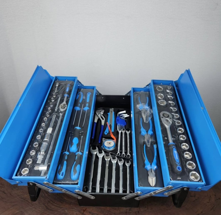 دارای: ✔ مجموعه آچار از ۸ تا ۱۹ ✔ انبردست، دمباریک، کاتر با تیغ اضافه، انبر کلاغی ✔ ۶ عدد بکس نوک پیچ گوشتی ✔ یک سری آلن ۱ تا ۱۲ میلیمتر ✔ یک عدد متر ۵ متری ✔ انبرقفلی ✔ به همراه کیف حمل فولادی اتوماتیک ✔ قیمت عالی و ارزنده
