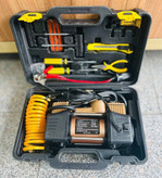 ✔ متعلقات کاربردی؛ شلنگ فنری به طول ۵ متر، دمباریک، کاتر، انبرک های پنچر گیری، پیچ گوشتی دوسو و چهارسو، وصله پنچرگیری، چسب پنچرگیری، تبدیل فندکی به سر باتری خودرو، سه عدد سری (جهت باد زدن توپ، دوچرخه، قایق بادی و ...)