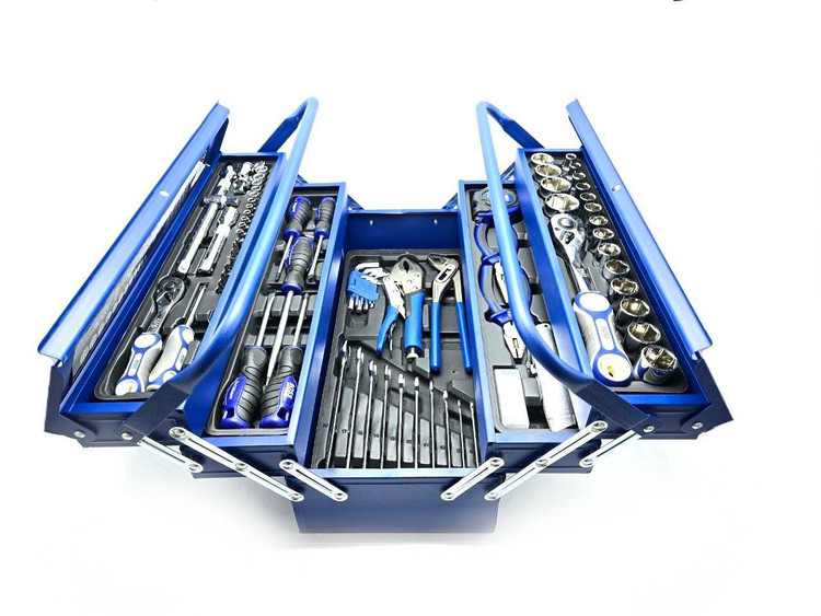دارای: ✔ ۵ عدد پیچ گوشتی دو سو و چهارسو ✔ مجموعه آچار از ۸ تا ۱۹ ✔ انبردست، دمباریک، کاتر با تیغ اضافه، انبر کلاغی ✔ ۶ عدد بکس نوک پیچ گوشتی و...دارای کیف حمل فولادی اتوماتیک