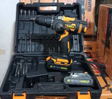 ۲ باطری لیتیوم یونی، ۲۴ ولت واقعی، چکشی دار ، سه حالته (سوراخ کاری فلزات، چوب و PVC، پیچ بند و سوراخ کاری چکشی)، ترکمتر دار ( تنظیم قدرت) ، چپگرد راستگرد، سه نظام ۱۳ فلزی اتومات، به همراه لوازم کیفیت عالی