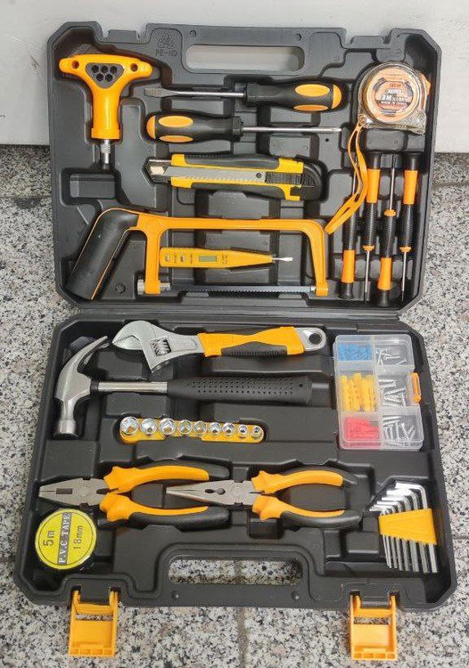 شامل کلیه ی ابزارهای دستی مطابق عکس آچار فرانسه، چکش، پیچ گوشتی، کاتر ، متر و ... مناسب جهت مصارف خانگی و ..