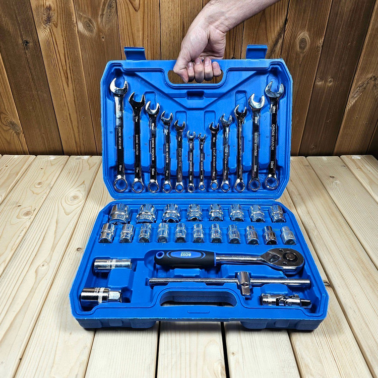 مشخصات: ✔ دارای ۱۹ عدد بکس درایو ۱/۲ ( سایزهای: ۸، ۹، ۱۰، ۱۱، ۱۲، ۱۳، ۱۴، ۱۵، ۱۶، ۱۷، ۱۸، ۱۹، ۲۰، ۲۱، ۲۲، ۲۴، ۲۷، ۳۰ و ۳۲) ✔دارای ۱۲ عدد آچار یکسر رینگ (سایزهای : ۸، ۹، ۱۰، ۱۱، ۱۲، ۱۳، ۱۴، ۱۵، ۱۶، ۱۷ ، ۱۸ ، ۱۹) ✔ دارای جغجغه ضامن دار کله گاوی و قدرتمند