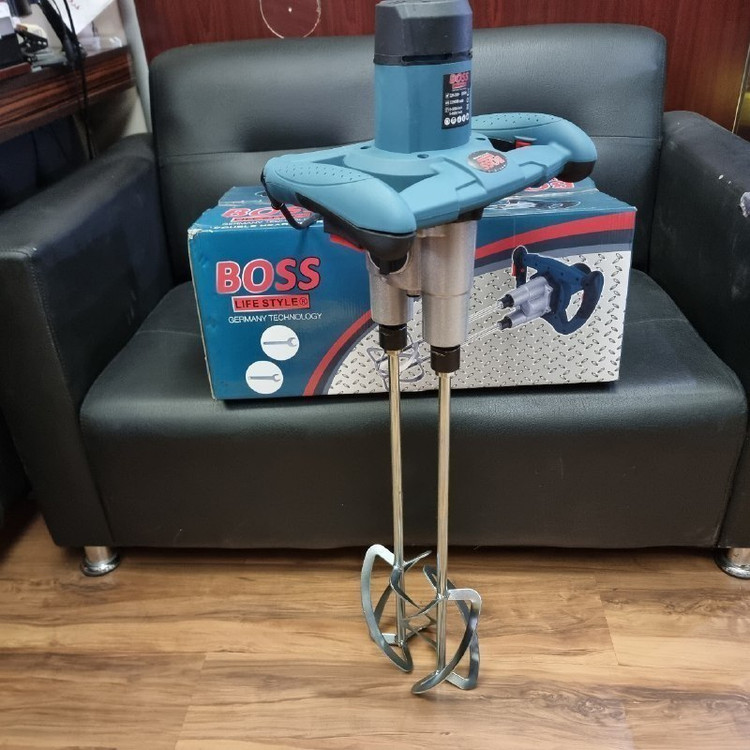 دو عدد مته همزن آبکاری شده به طول ۸۰ سانت ✔ قطر سر همزن ۱۵ سانت ✔ میله قطر ۱۶ ✔ سیم پیچ تمام مس ✔ دو دسته ✔ قابلیت تعویض ذغال بدون باز کردن دستگاه