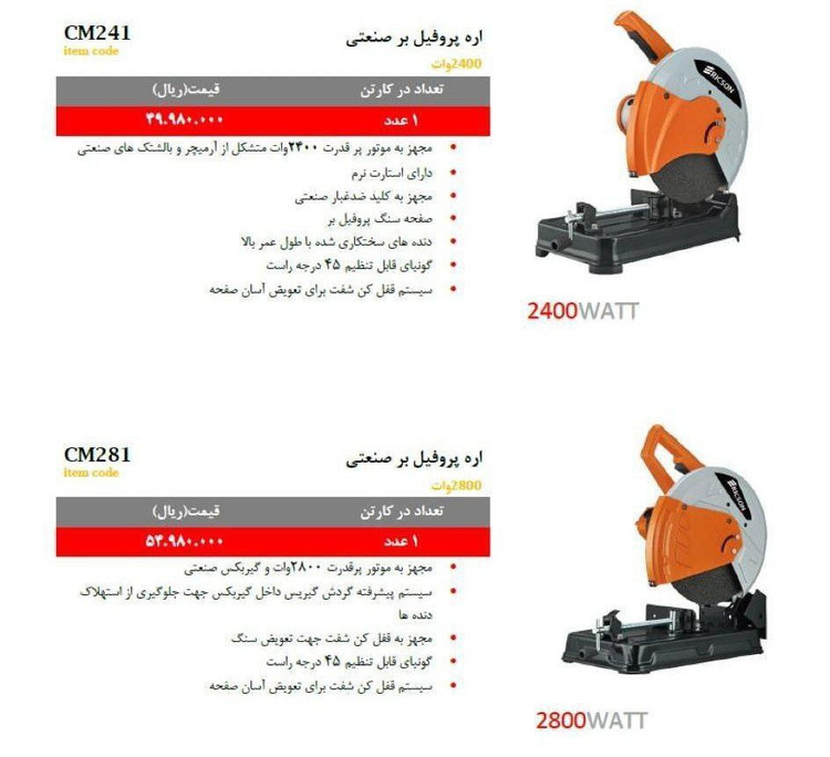 اره پروفیل بر صنعتی ۲۸۰۰ وات اریکسون CM281
