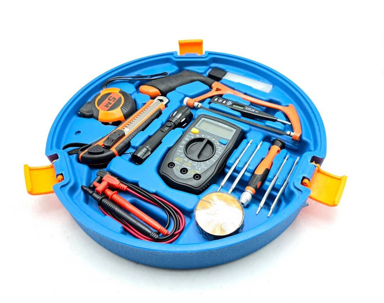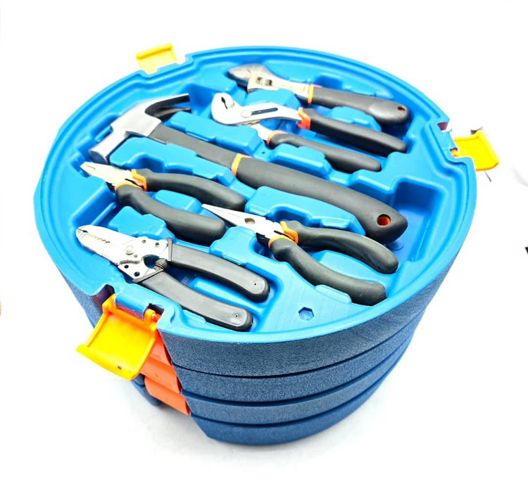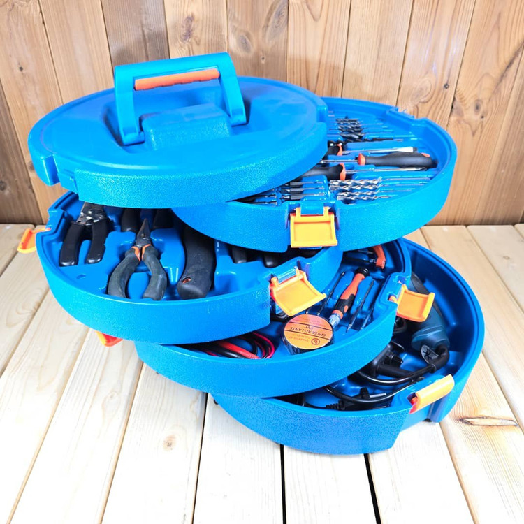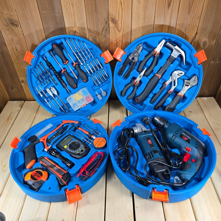مشخصات: ✔ پنج طبقه مجموعه ابزار کامل ✔ دارای دریل۱۳ چکشی و مینی فرز ✔ انبردست، دمباریک، انبر کلاغی، چکش دوشاخ ۵۰۰، سیم لخت کن ✔ ولت متر، اهم متر، کمان اره، فازمتر، متر ۵ متری، کاتر، چراغ قوه، پیچ گوشتی ساعتی با سری های مختلف، چسب برق، ۱۰ عدد تیغ کاتر