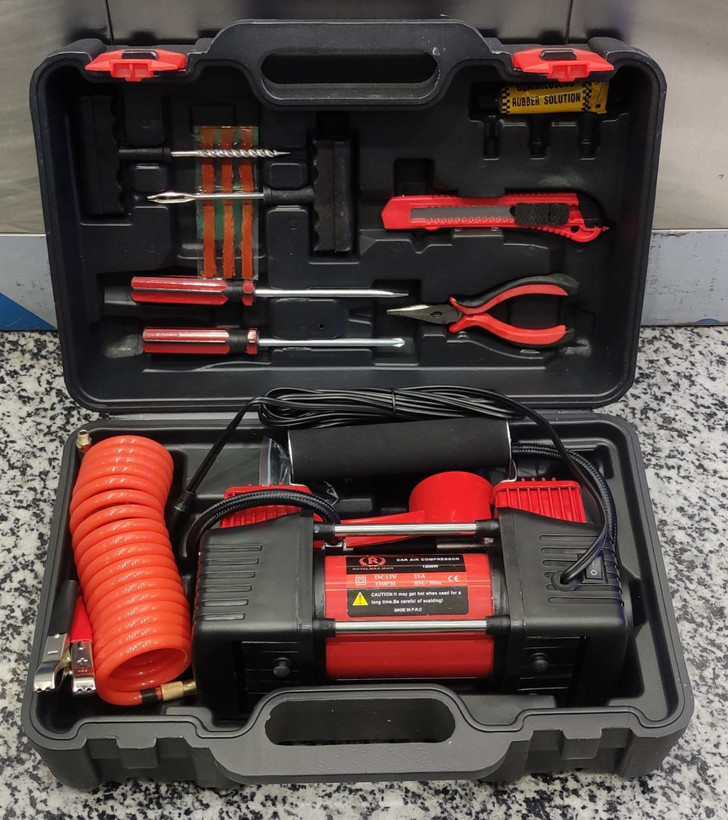 ✔ دارای متعلقات کاربردی؛ شلنگ فنری به طول ۵ متر، دمباریک، کاتر، انبرک های پنچر گیری، پیچ گوشتی دوسو و چهارسو، وصله پنچرگیری، چسب پنچرگیری، تبدیل فندکی به سر باتری خودرو، سه عدد سری (جهت باد زدن توپ، دوچرخه، قایق بادی و ...)