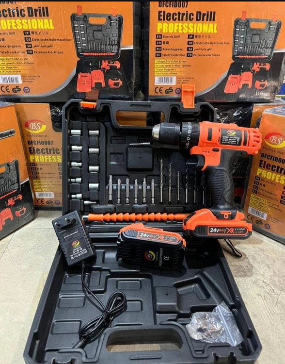 مشخصات: ۲۴ ولت ، ۲ باطری، چکشی دار، سه نظام فلزی، به همراه لوازم کامل کیفیت عالی مناسب مصارف صنعتی و خانگی