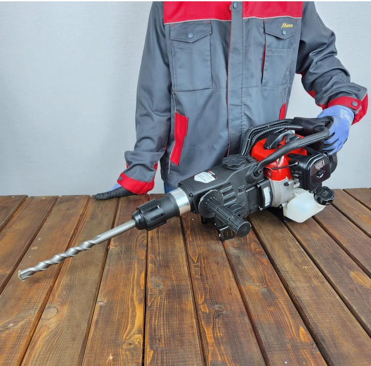 مشخصات: موتور دو زمانه، انرژی ضربه ای ۳۰ ژول، ۵۳۰۰ دور بر دقیقه، مصرف سوخت نیم لیتر بر ساعت، قابلیت استفاده مته تا سایز ۵۰، دارای عملکرد دو گانه( مته چکشی و تخریب)، به همراه دو عدد قلم تخت و تیز و سه عدد مته ۵ شیار ، ظرفیت مخزن سوخت ۹۰۰ سی سی