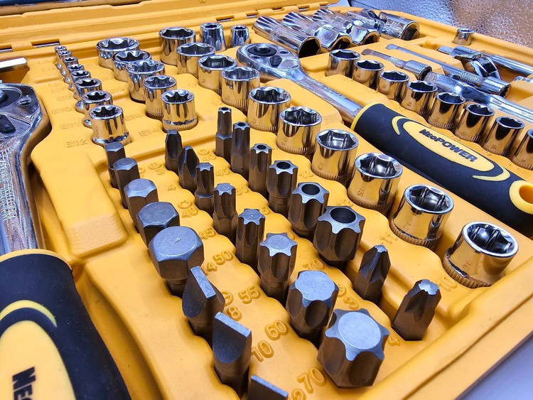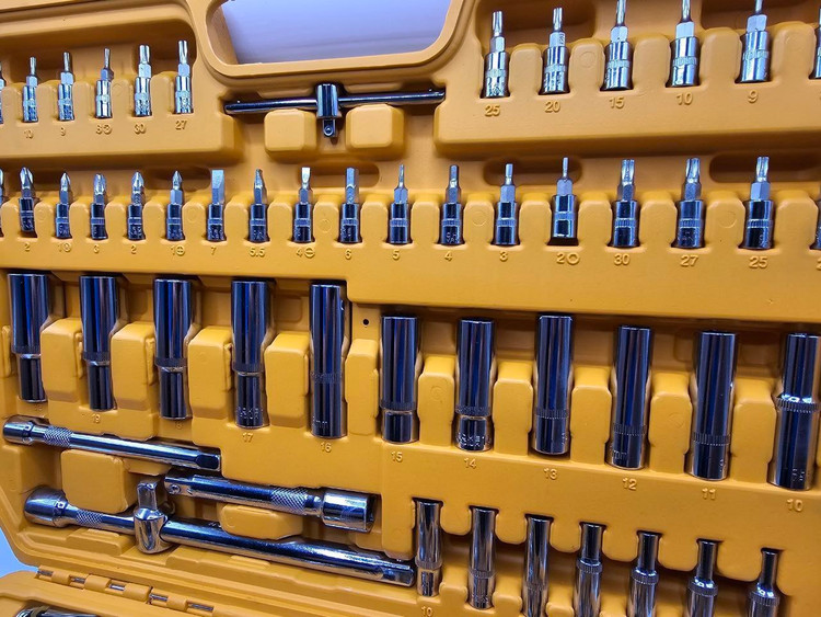 مشخصات: ✔ کیفیت صنعتی و کار سنگین ✔ دارای جغجغه های ۷۲ دندانه و صنعتی ✔ ابعاد بسته بندی در حالت بسته ۳۵×۴۶ سانتی متر ✔ ۱۸ عدد بکس۱/۲( سایزهای ۱۰ تا ۳۲) ✔ ۱۰ عدد بکس ۳/۸(سایزهای ۱۰ تا ۱۹) ✔ ۱۳ عدد بکس ۱/۴( سایزهای ۴ تا ۱۴) ✔ ۱۳ عدد بکس E(سایزهای ۴ تا ۱۴)