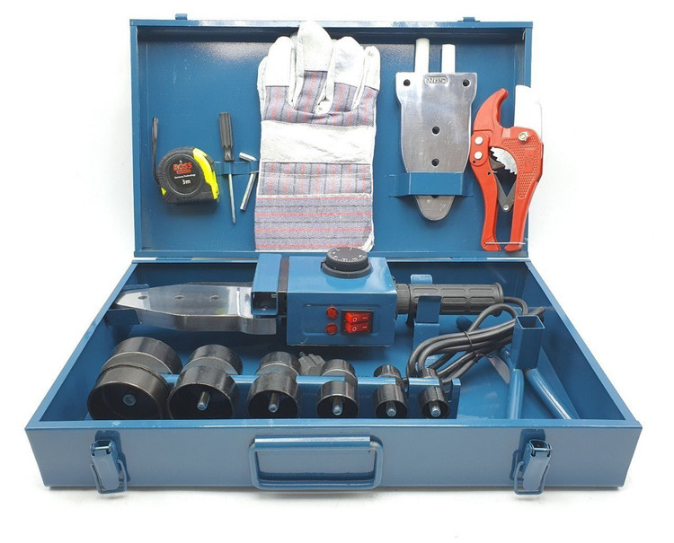 دارای: ✔ دارای ۶ عدد لقمه گرافیتی (سایزهای: ۲۰، ۲۵، ۳۲، ۴۰، ۵۰ و ۶۳ میلیمتر) ✔ به همراه کیف فلزی، قیچی برش لوله، پیچ گوشتی، آچار آلن، متر ۳ متری، دستکش ✔ وزن ۴.۷ کیلوگرم