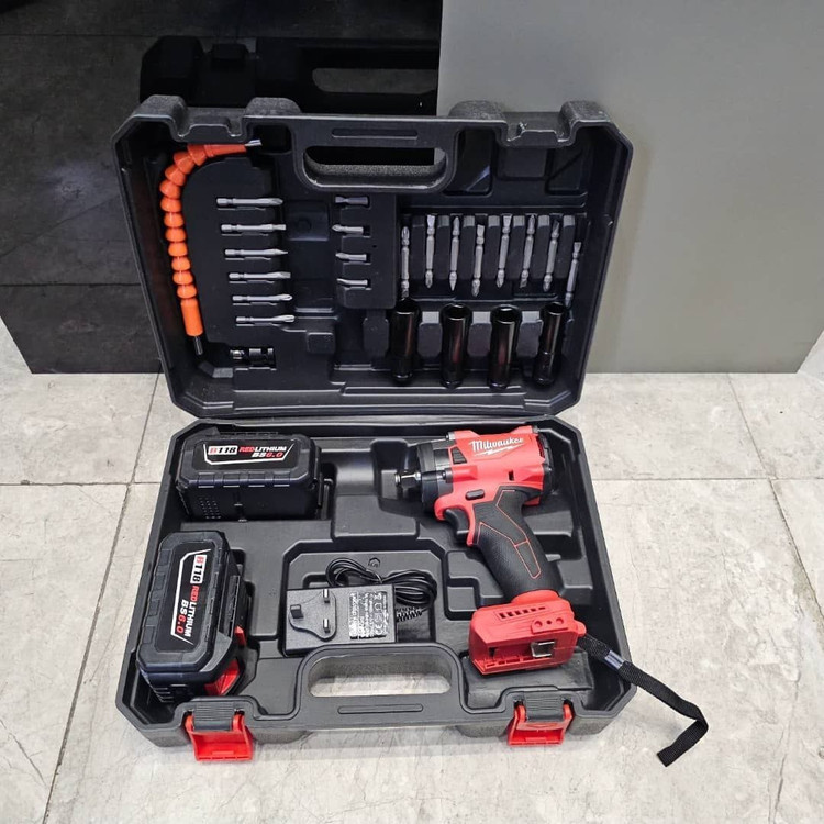 مشخصات: ✔ مارک برجسته ✔ گیربکس دو دور ✔ دو عدد باتری ۱۱۸ ولت تاریخ جدید ✔ ۳۸۰۰-۱۶۰۰ دور بر دقیقه ✔ موتور براش لس Brushless ✔ گشتاور ۳۸۰ نیوتن بر متر ✔ تنظیم عملکردها با دکمه های لمسی ✔ قابلیت تنظیم دو مرحله سرعت