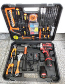 دریل شارژی ۲۴ ولت چکشی دار ، ۲ باطری، ۲ سرعته به همراه شارژر خشابی و ابزاردستی شامل چکش، انبردست، پیچ گوشتی، آچار فرانسه و ... کیفیت عالی مناسب مصارف خانگی و صنعتی
