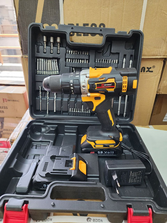 سه نظام فلزی، چکشی دار، دو باطری به همراه لوازم کامل مطابق عکس، چپگرد راستگرد، ۵۸ ولت (۲۰ ولت واقعی)