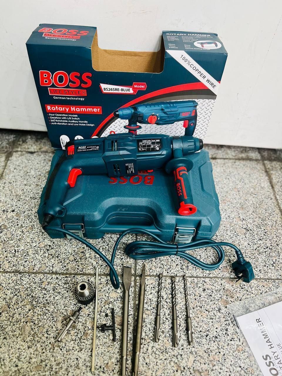 ۲۲۰۰ وات، ۳ حالته سوراخ کاری فلزات ، سوراخ کاری بتن ، سنگ ، آجر، موزائیک و ...، تخریب سبک کاشی، گچ، سرامیک، چپگرد راستگرد، ماشه گازی،