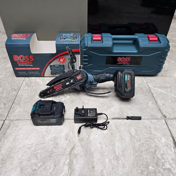 مشخصات: ✔ دو عدد باتری ۸۸ ولت تاریخ جدید ✔ کارگیر ۱۵ سانت ✔ باتری های ۳.۵ آمپر لیتیوم ✔امکان تعویض زنجیر ✔ سیم پیچ تمام مس ✔ امکان رگلاژ زنجیر بدون نیاز به آچار